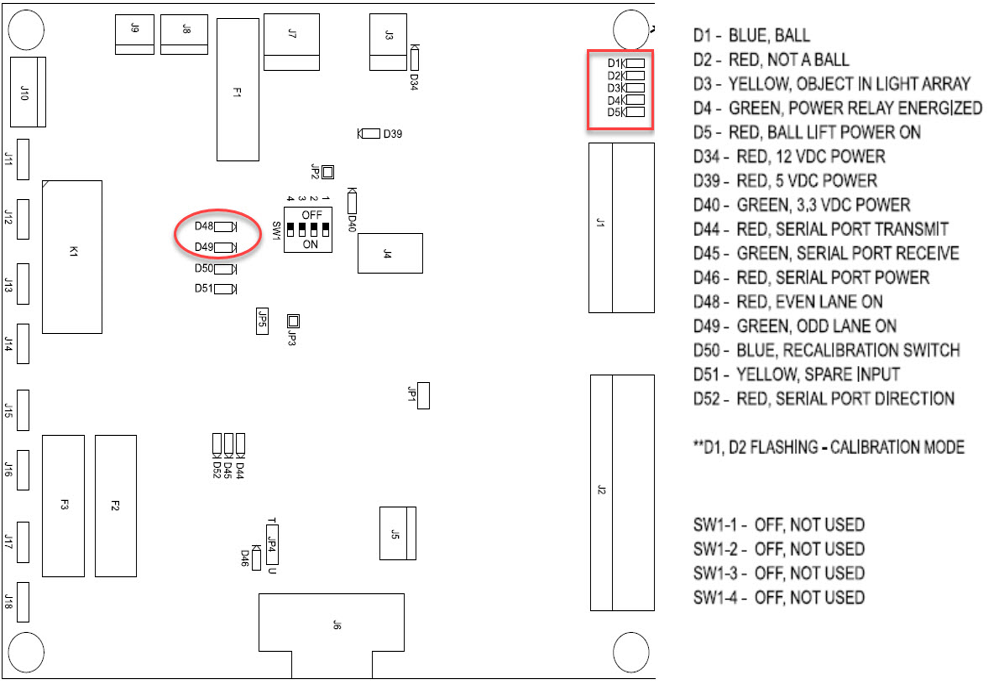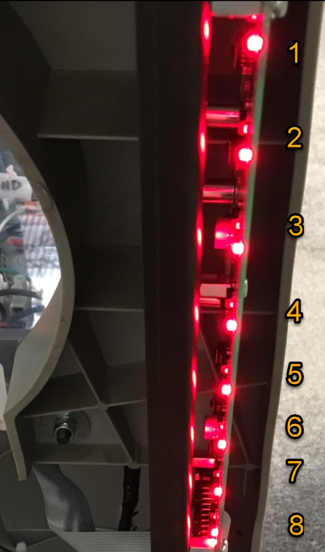 - Inspect the arrays and be sure they're properly aligned, you should be able to see 8 red LED on one side of the ball hood, inspect the adjustment rods be sure they're tight.