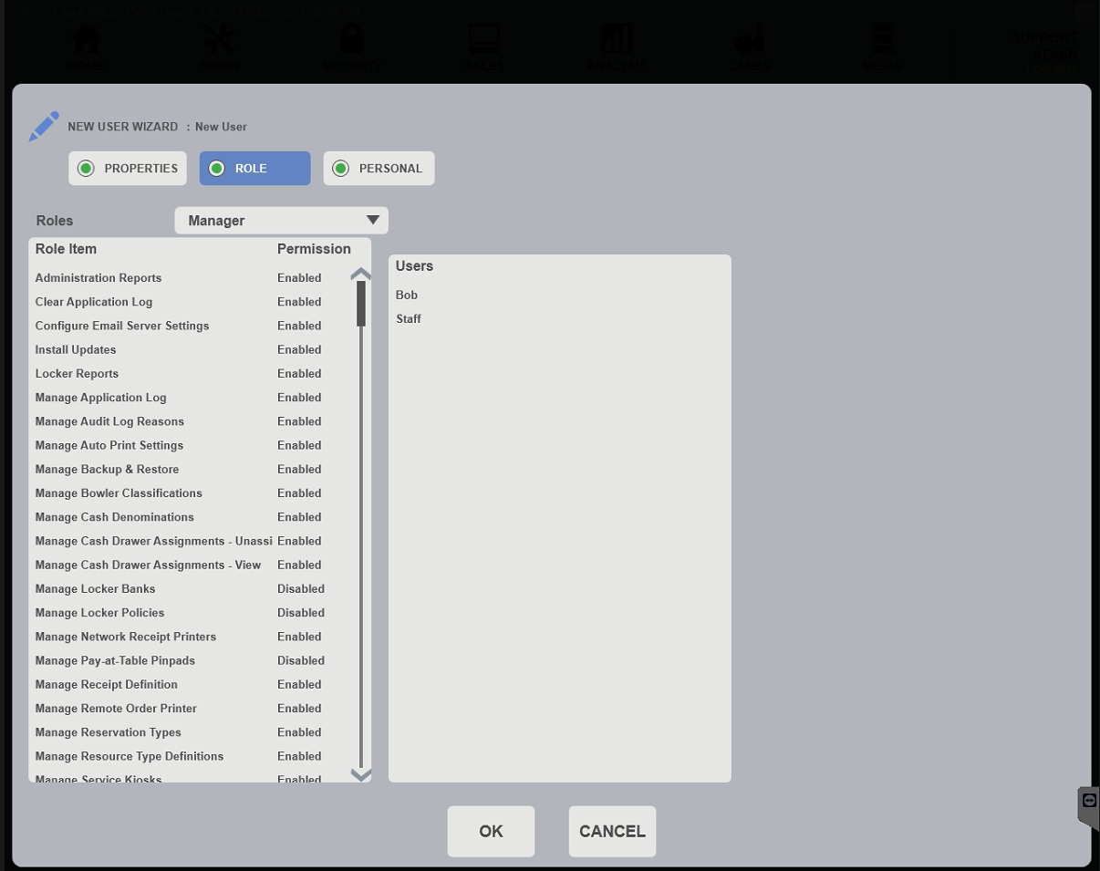 Once the role is selected the dot at the top turns green and you can click ok at the bottom which will take you back to the list of users and the new one will be created.
