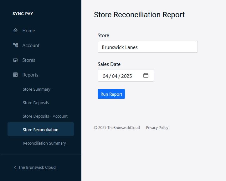 - Store Reconciliation: Shows individual credit card transactions posted by both Sync and the Sync Pay cloud platform through Adyen.