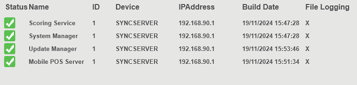 Your services should be all be green indicated with a green tick. Reboot all tills and Sync devices.